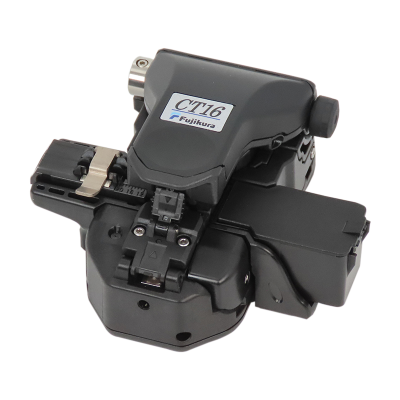- FUJIKURA CT-50 – компактный, за раз обрабатывает до 12 оптоволокон, процесс выполняется в одно действие, нож можно использовать до 60000 раз;